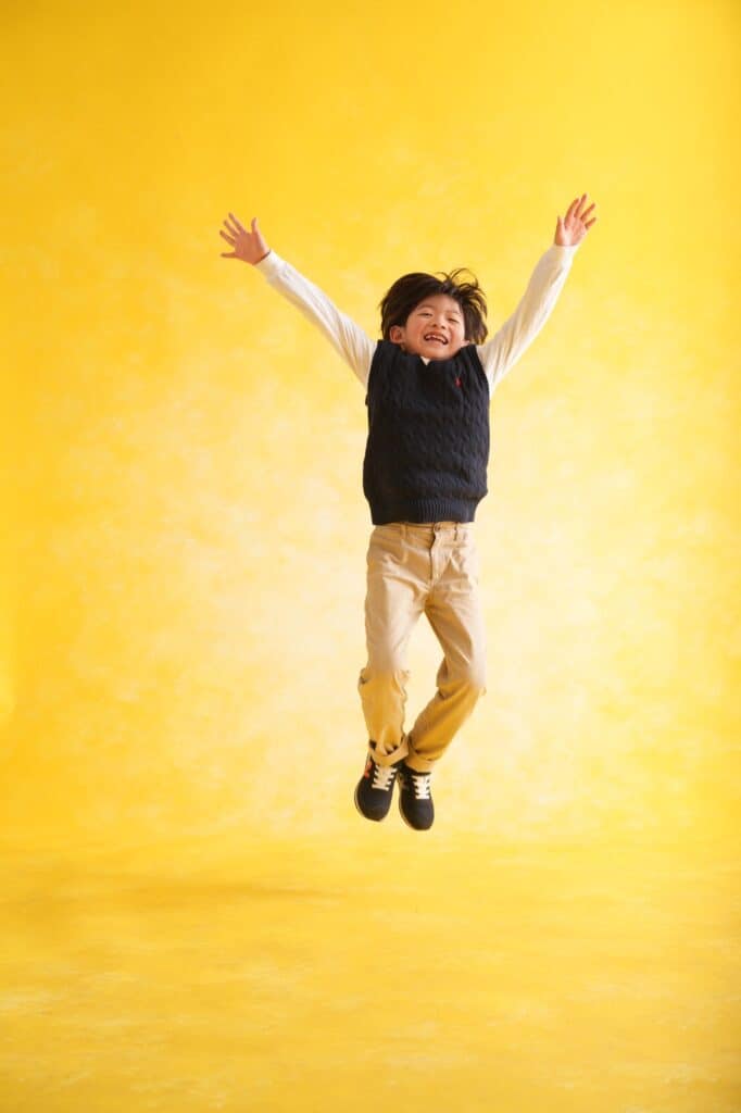ジャンプしてコケて元気いっぱい