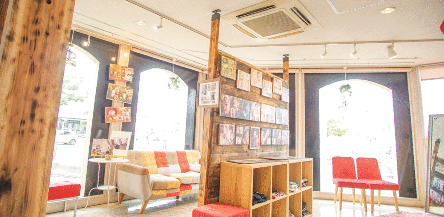 撮影スポットにもなるお洒落な場所。お客様を暖かくお迎えいたします。